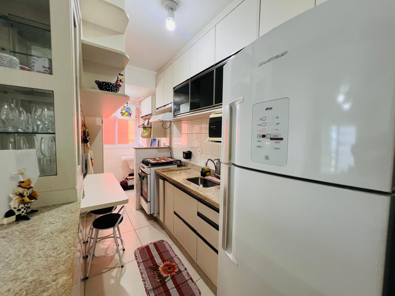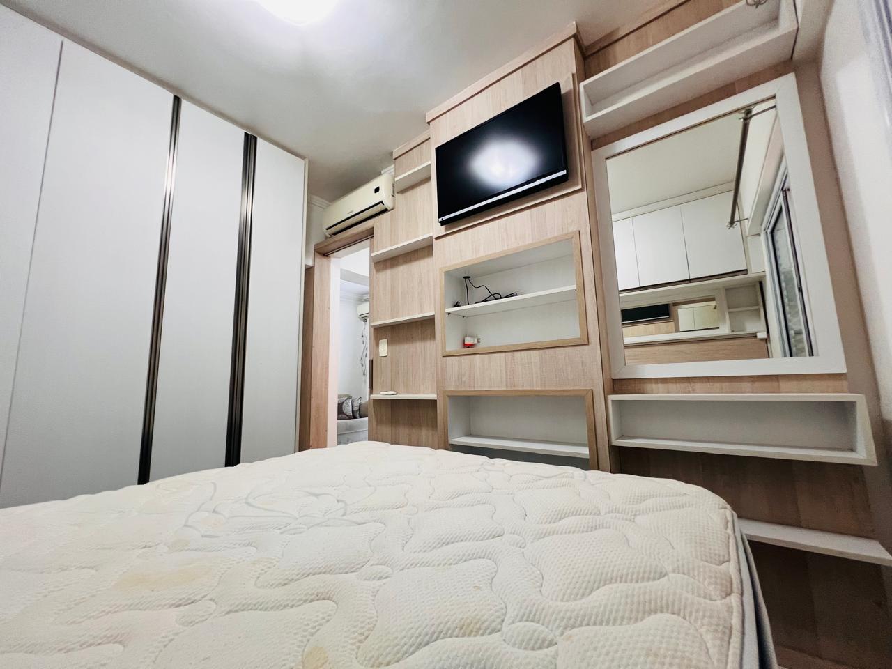 Excelente apartamento mobiliado com 2 dormitórios, sala arejada, cozinha funcional, 1 banheiro, área de serviço, móveis planejados e 1 vaga de garagem. O condomínio conta com piscina, 2 elevadores, bicicletário e mini mercado no prédio, oferecendo praticidade e lazer para toda a família.